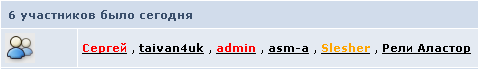 <tr> <td class='pformstrip' colspan='2'>{$ibforums->whobeen['TOTAL']} участников было сегодня</td> </tr> <tr> <td width="5%" class='row2'><{F_ACTIVE}></td> <td class='row4' width='95%'>{$ibforums->whobeen['NAMES']} </td> </tr> |